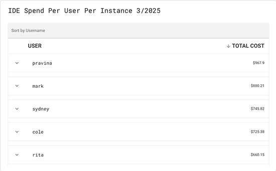 1. Stay on the Personal IDE Billing tab, and scroll to the next section, Personal IDE and Private Folder Spend [Month Year].