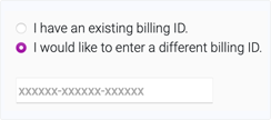 B. Alternatively, click I would like to enter a different billing ID, and enter a new 18-digit ID.