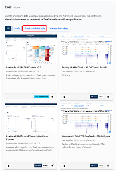 b. To filter out visualizations in draft mode, click Final and Publishable.