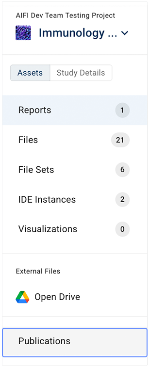 3. On the Studies > [Your Study] page, in the side navigation menu, click PUBLICATIONS.