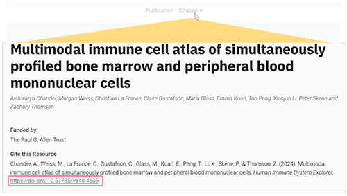 i. To find the DOI, at the top of the card, click Citation +.