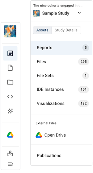 - Tracks the evolution of your data and methods, including your IDE uploads, saved visualizations, and other study assets.