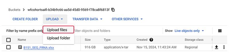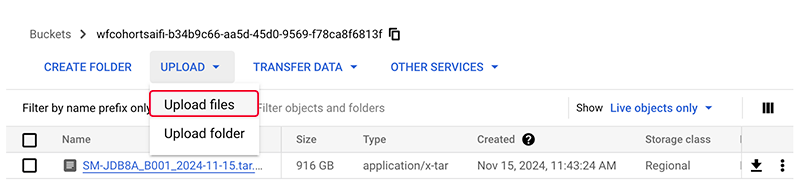 C. A cloud storage bucket opens. Upload all required batch files to this folder.