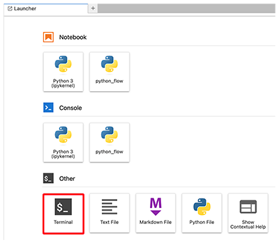 5. Wait for the instance to open. Then, on the Launcher tab, click Terminal.
