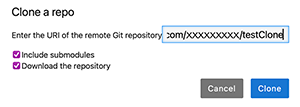 12. Click Clone. Voilá! Enjoy your fully integrated Git experience.
