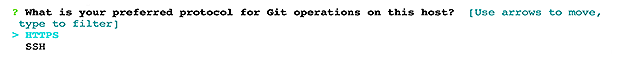 B. Question 2: What is your preferred protocol for Git operations on this host? To accept the default answer, HTTPS, press Enter.