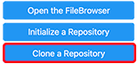 10. Choose Clone a Repository. (You'll need to clone your repo only once, because after the files and folders in the repo have been cloned to your local machine, you can then interact with them on a local Git branch.)