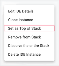 To edit, copy (clone), move, or delete instances from a stack, click the ellipsis next to the IDE you want to change.