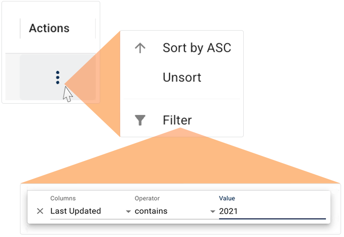 For more filtering options, click the ellipsis in the Actions column next to any saved query.