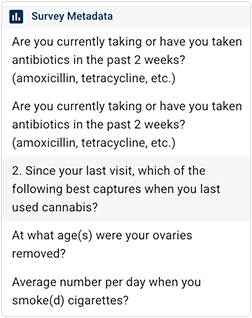 a. In the Metadata column, click SURVEYS.