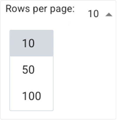 i. (Optional) To save time, you can adjust the number of rows per page displayed in the results window. In the lower-right corner of the table, click Rows per page. Then click the arrow to open the drop-down list, and select 10, 50, or 100. The default is 10.