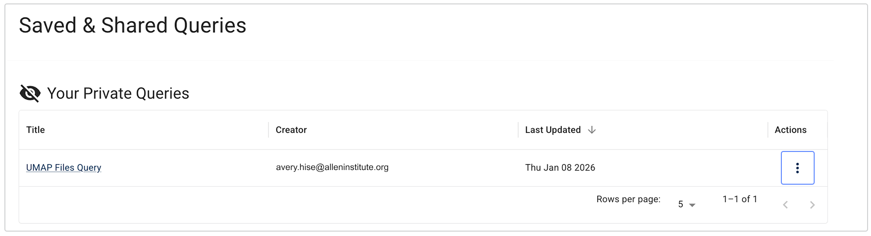 E. On the Saved & Shared Queries, page, in the Your Private Queries field, find the query you want to share. In the Actions column, click the ellipsis.