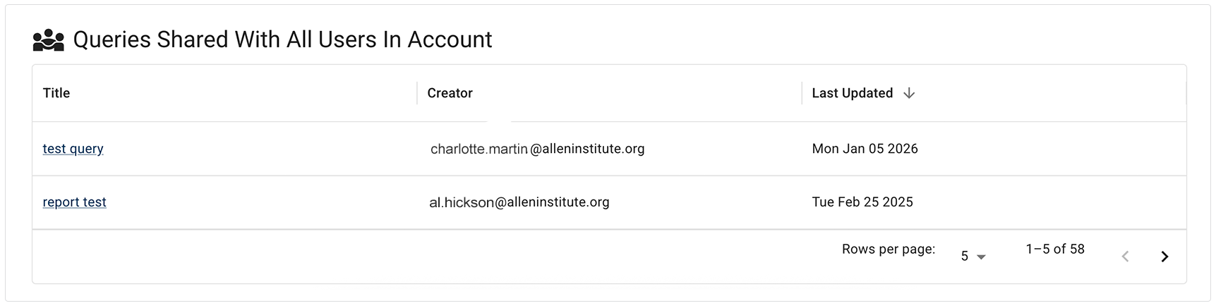 iv. In the Queries Shared with All Users in Account section, click the title of the shared query you want to use.