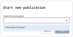 5.In the Start new publication dialog box, in the Select the starting report field, click the arrow and choose a report from the drop-down list.