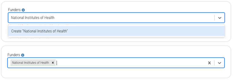 4. If the default funder is not correct, or if you want to add additional funding sources, type the funder's name into the Funders field, and press Enter to create a new funder.