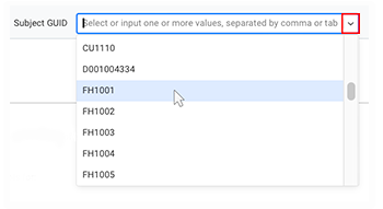 i. To display a list of all available subject GUIDs, click the arrow to the right of the Subject GUID field.