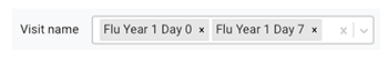 C. Choose visit names. In HISE, a sample represents a single collection, also known as a visit. You can filter for one or more visits by choosing from a list populated by the project cohorts.